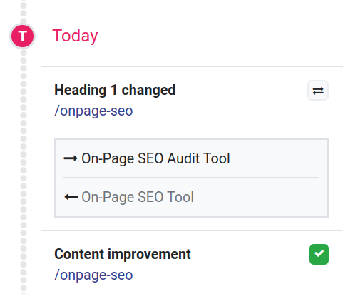 Om alle veranderingen te bekijken navigeer je via 'SEO audit' naar 'Track Changes'. Daar krijg je een overzicht van alle veranderingen die wij zijn tegengekomen.