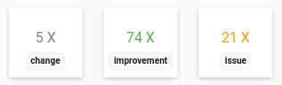 De grafieken bovenaan de pagina laten de totale SEO score, het type veranderingen, het aantal veranderingen per type en de pagina's met het meeste veranderingen snel zien. 'Fouten' krijgen een oranje kleur, verbeteringen een groene kleur en veranderingen een neutrale grijze kleur.